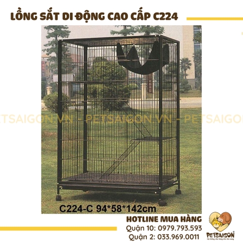 CHUỒNG MÈO CÓ TẦNG - LỒNG SẮT DI ĐỘNG CAO CẤP CHO MÈO MÃ C224-C