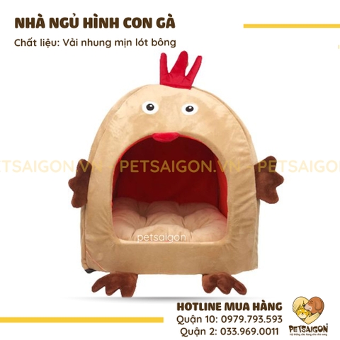 Nhà ngủ hình con gà cho chó mèo có chất liệu làm từ vải nhung, mang đến cảm giác an toàn và ấm áp cho chó mèo vào các ngày lạnh