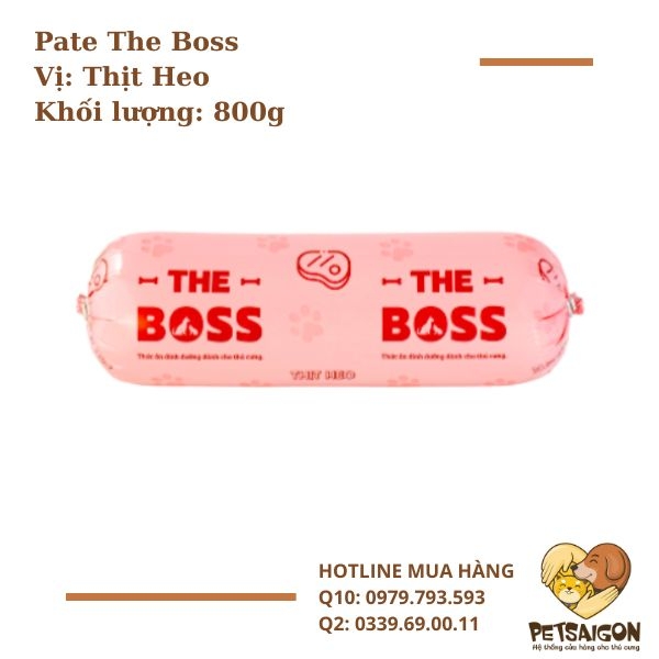 Pate tươi The Boss là sản phẩm dinh dưỡng dành cho chó, được sản xuất bởi thương hiệu The Boss Việt Nam. Sản phẩm được chế biến từ nguyên liệu tươi sạch, đảm bảo cung cấp đầy đủ dưỡng chất cần thiết cho thú cưng.