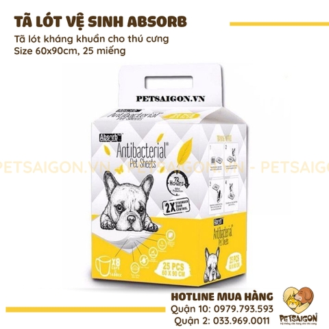 Absorb Plus Antibacterial là tã cho chó mèo lót vệ sinh hoàn hảo trong việc huấn luyện vệ sinh và giúp hỗ trợ chó lớn tuổi bị hạn chế việc vệ sinh bên ngoài