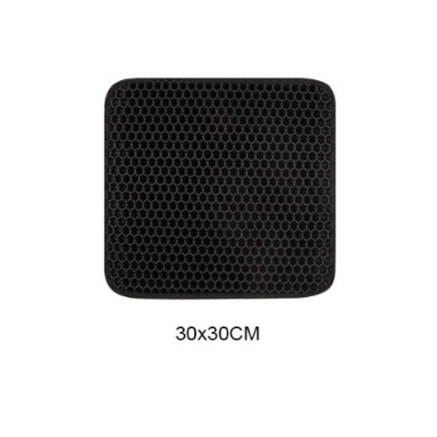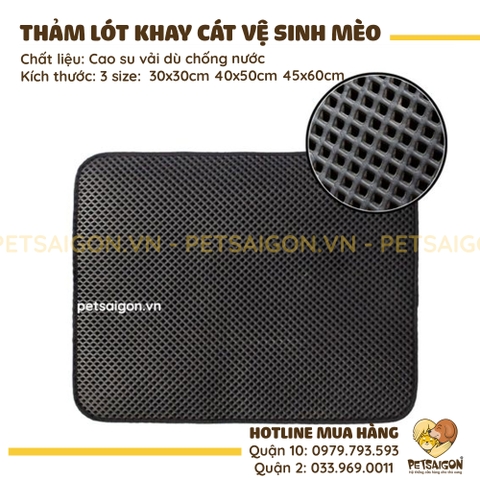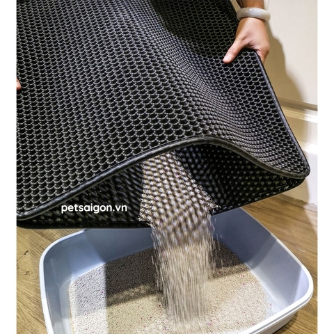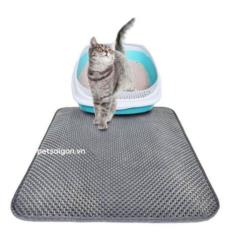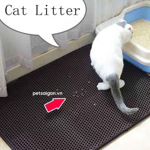 - Thảm lót khay cát vệ sinh cho mèo chống bắn cát Giúp bạn tránh được việc vất vả dọn cát bị vãi khắp nhà sau khi em mèo iu đi vệ sinh xong.