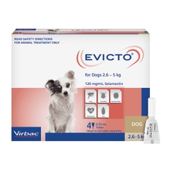 - Tính an toàn: Evicto được chứng minh an toàn với chó, mèo con từ 6 tuần tuổi, có thể sử dụng với chó, mèo mang thai hoặc đang cho con bú.
