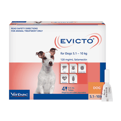Evicto là sản phẩm dạng nhỏ gáy cho chó và mèo với tác dụng phòng ngừa và điều trị hiệu quả đối với các nội & ngoại ký sinh trùng (xem phần Chỉ định). Một tuýp mỗi tháng sẽ giúp thú cưng đẩy lui những ký sinh trùng cũng như bảo vệ chúng ta khỏi các mầm bệnh có khả năng truyền lây từ chó, mèo sang người.