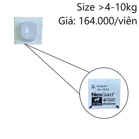 + Chó 8kg: dùng 1 viên NexGard 4-10kg