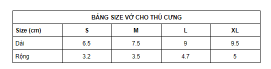 Vớ cho thú cưng 1 set gồm 4 chiếc. Bảng size như sau: